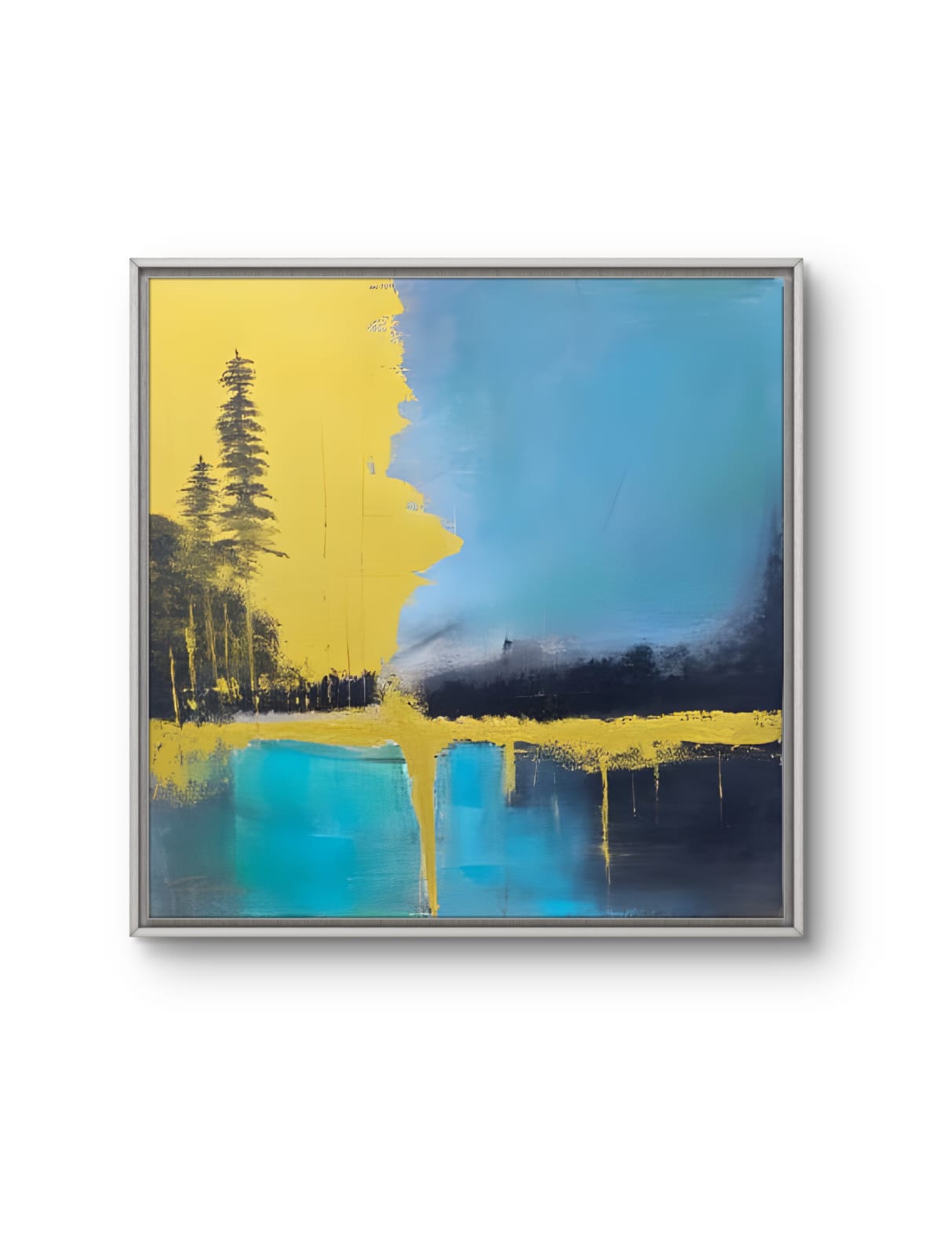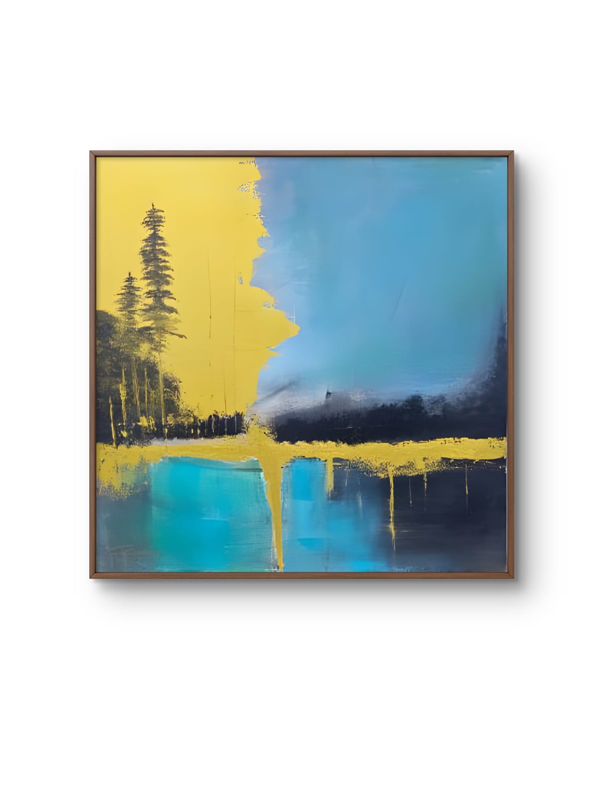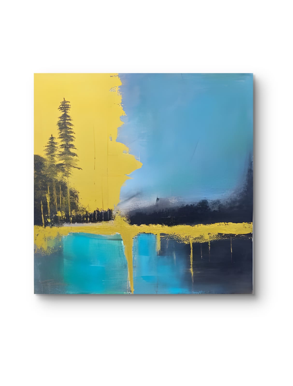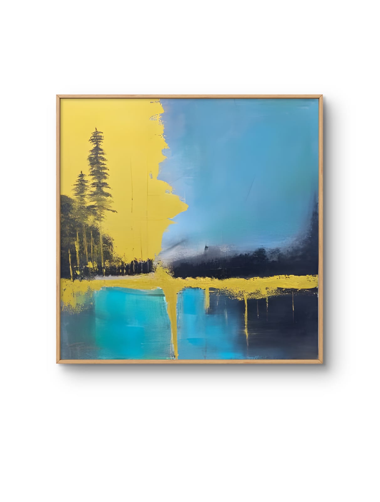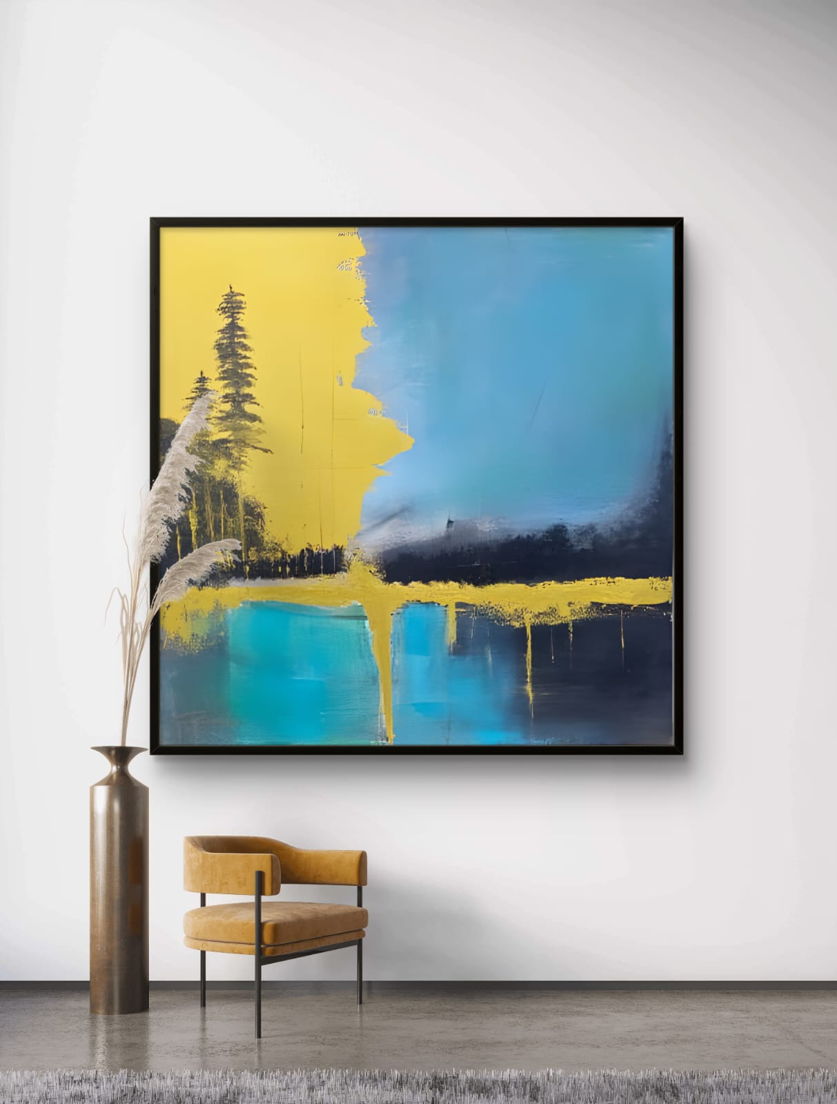 Transform your space with this stunning painting that captures the serene beauty of a yellow and blue landscape adorned with graceful trees. The vibrant hues evoke a sense of tranquility and warmth, making it a perfect addition to any room. Whether you're looking to enhance your living area or create a calming atmosphere in your office, this artwork serves as a captivating focal point that inspires creativity and relaxation.