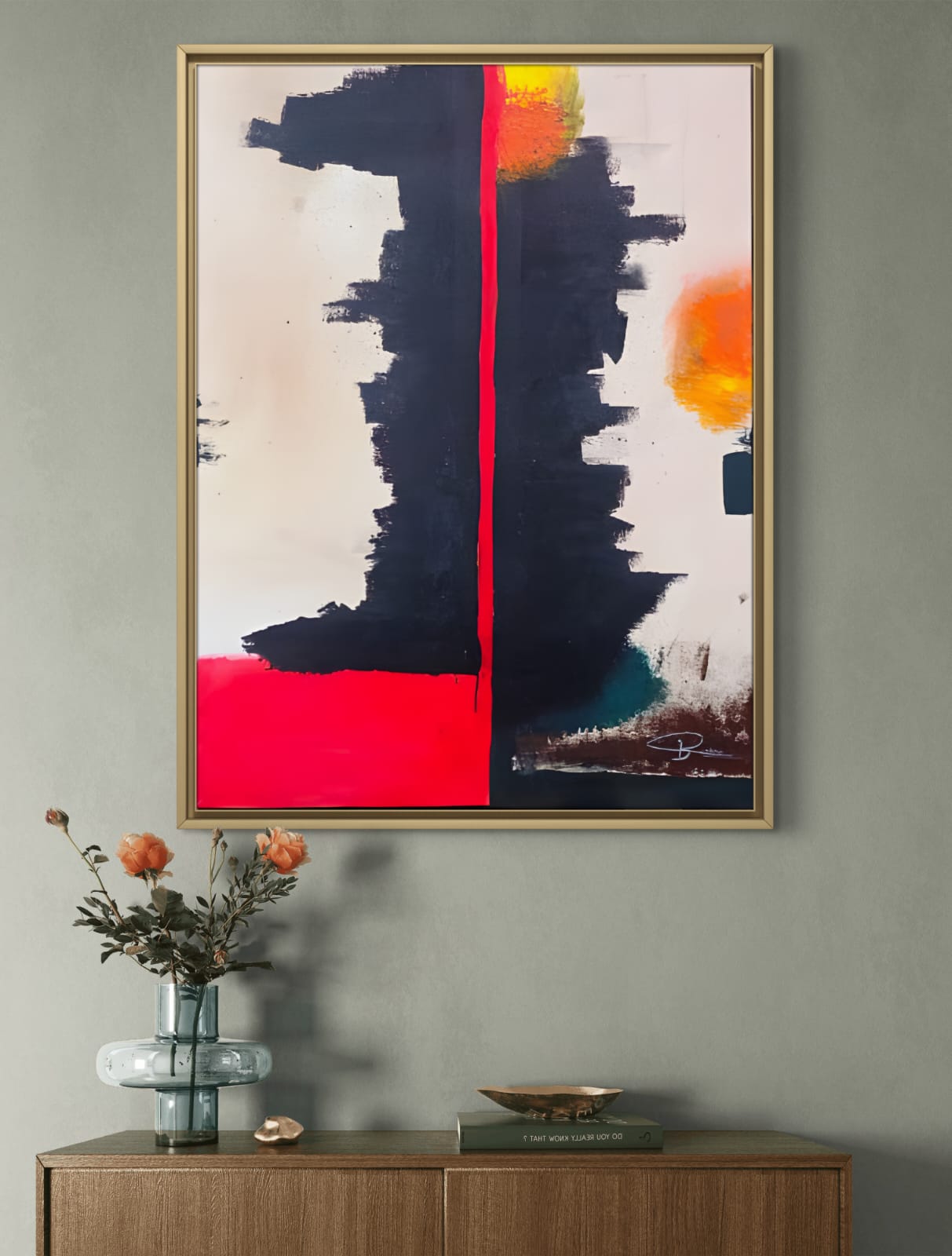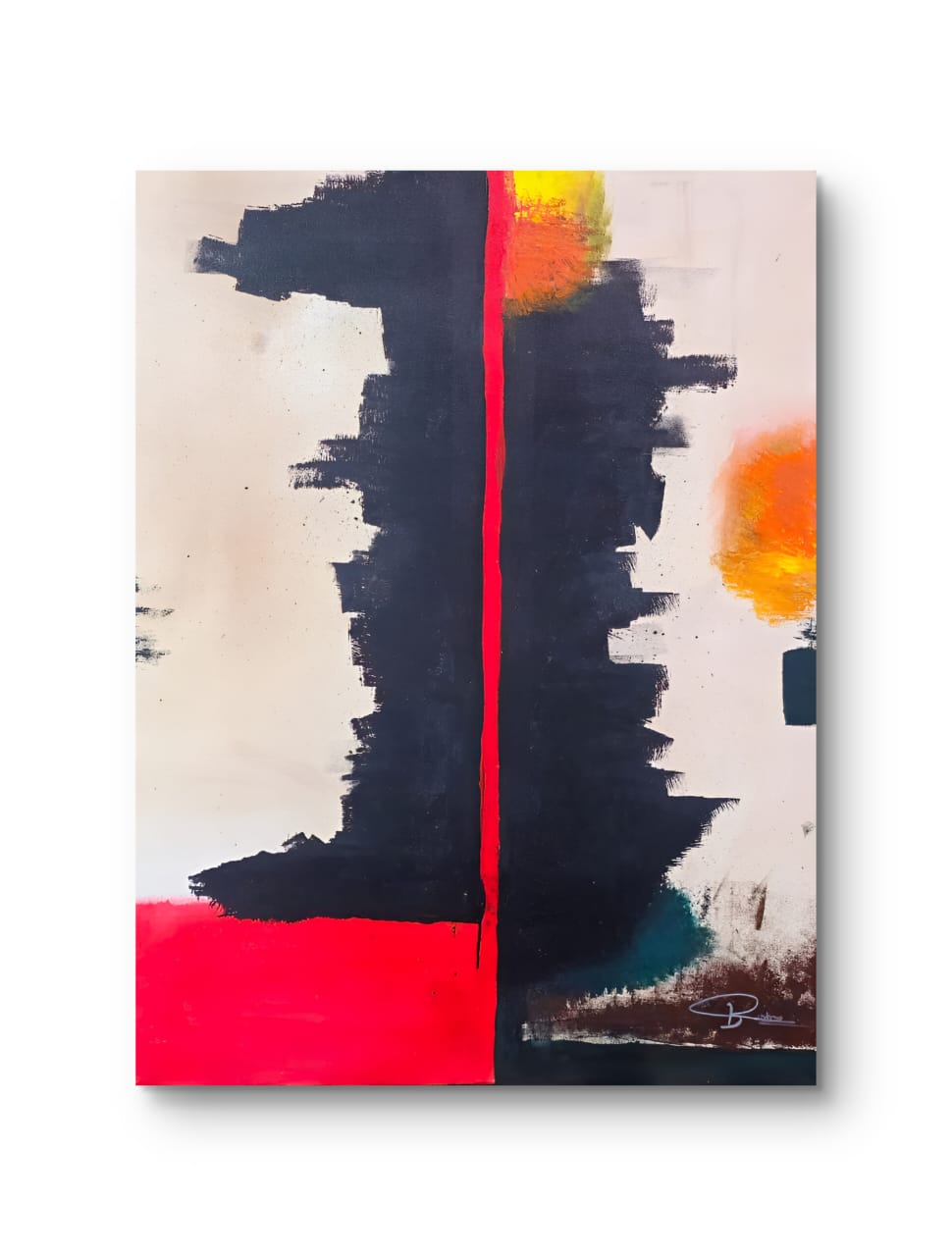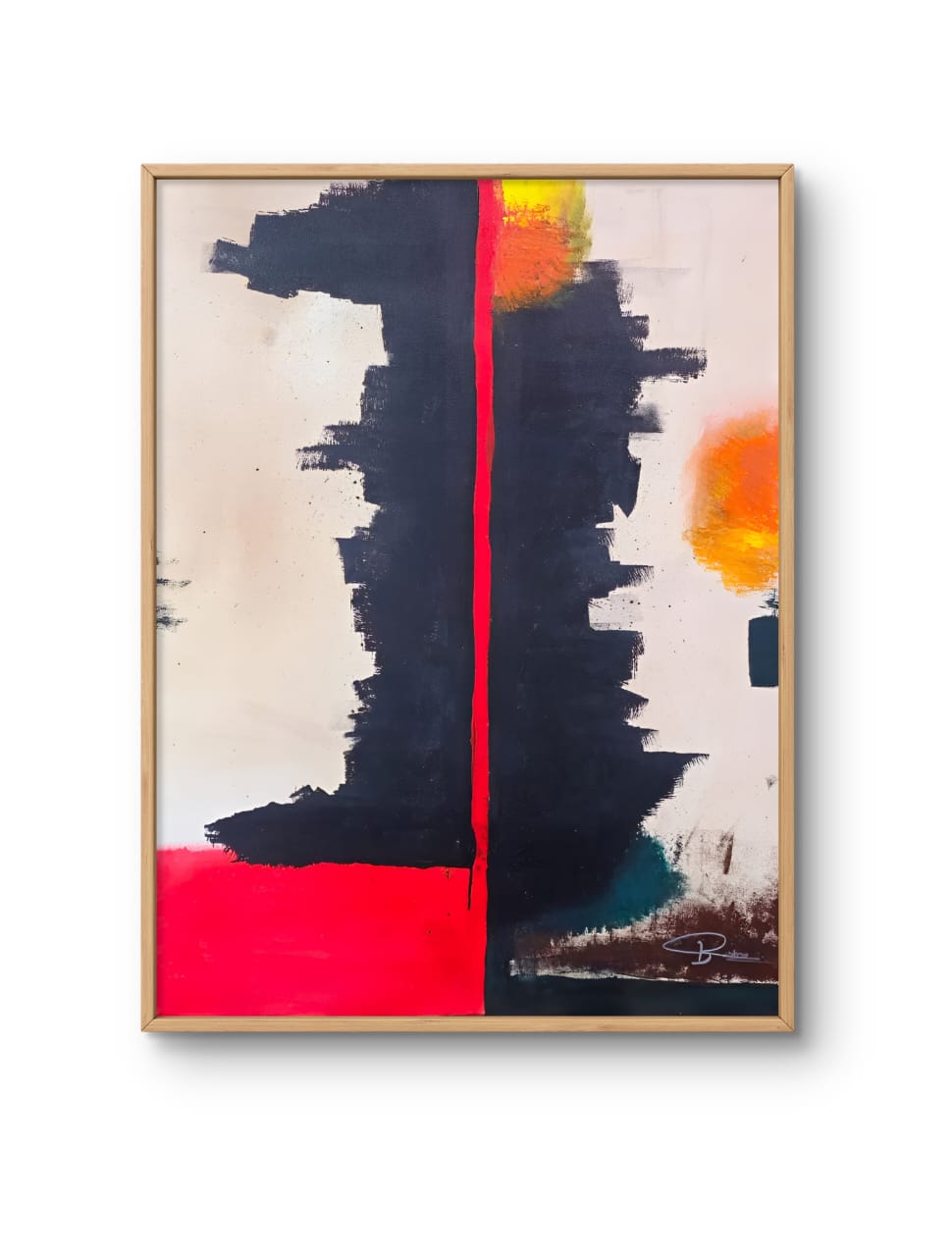Ignite your space with "Ember Eclipse," a stunning abstract painting that captivates with its bold interplay of red, yellow, and black hues. This striking artwork is designed to evoke passion and energy, making it the perfect centerpiece for any room. Its dynamic composition not only enhances your decor but also sparks conversation, inviting viewers to explore the depths of its vibrant colors.