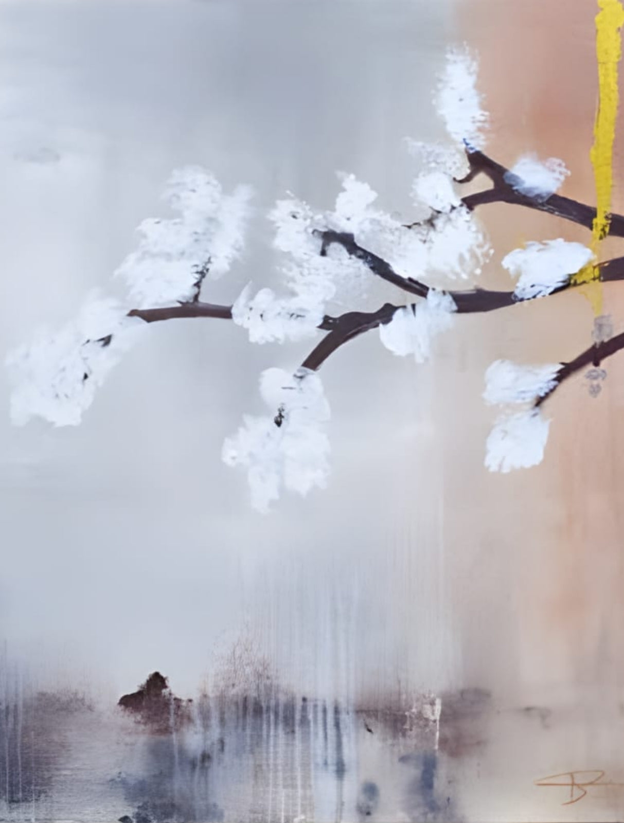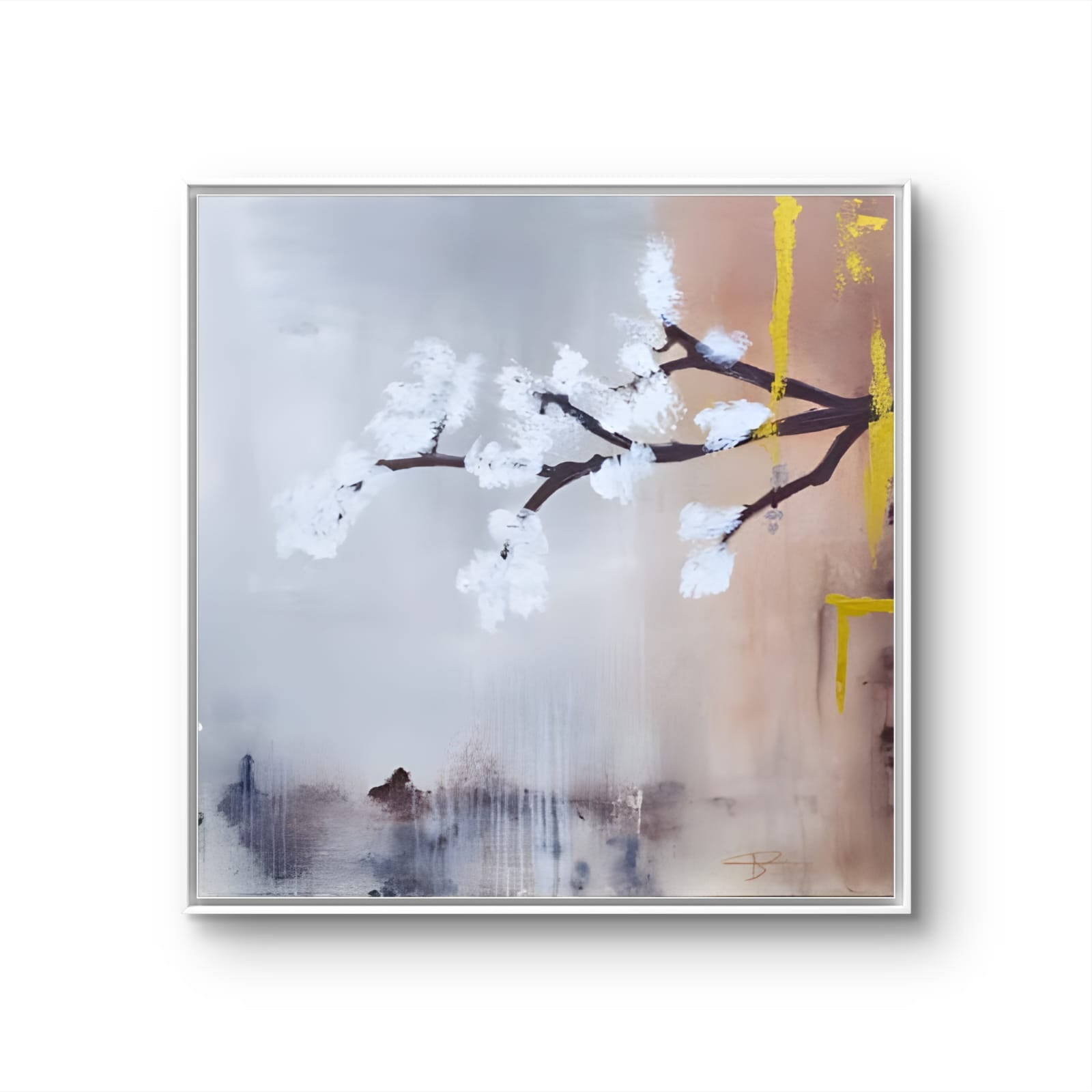 the real Bloom captures the delicate beauty of a white blossom set against a serene gray background, creating a stunning focal point for any space. This exquisite painting evokes a sense of tranquility and elegance, making it perfect for modern and minimalist decor. The soft contrast between the vibrant flower and the muted backdrop enhances its visual appeal, inviting viewers to appreciate the intricate details and gentle hues