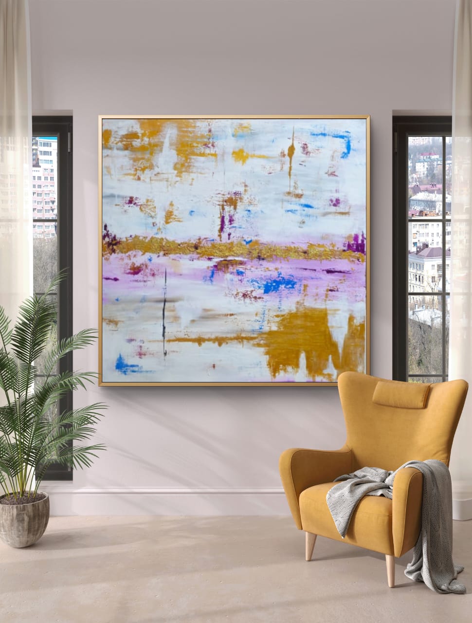Transform your space with the enchanting allure of "Majestic Dreamscape," an abstract painting that beautifully blends gold, purple, and white hues on canvas. This stunning artwork captures the imagination, evoking a sense of wonder and sophistication. Perfect for any room, it adds a touch of elegance and a splash of color, making it an ideal centerpiece for your home or office