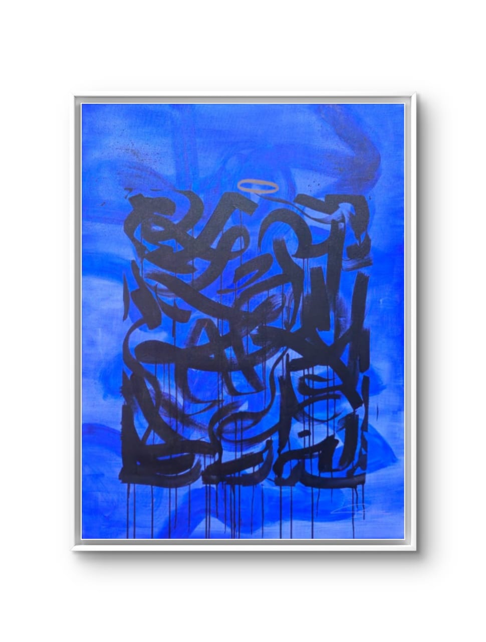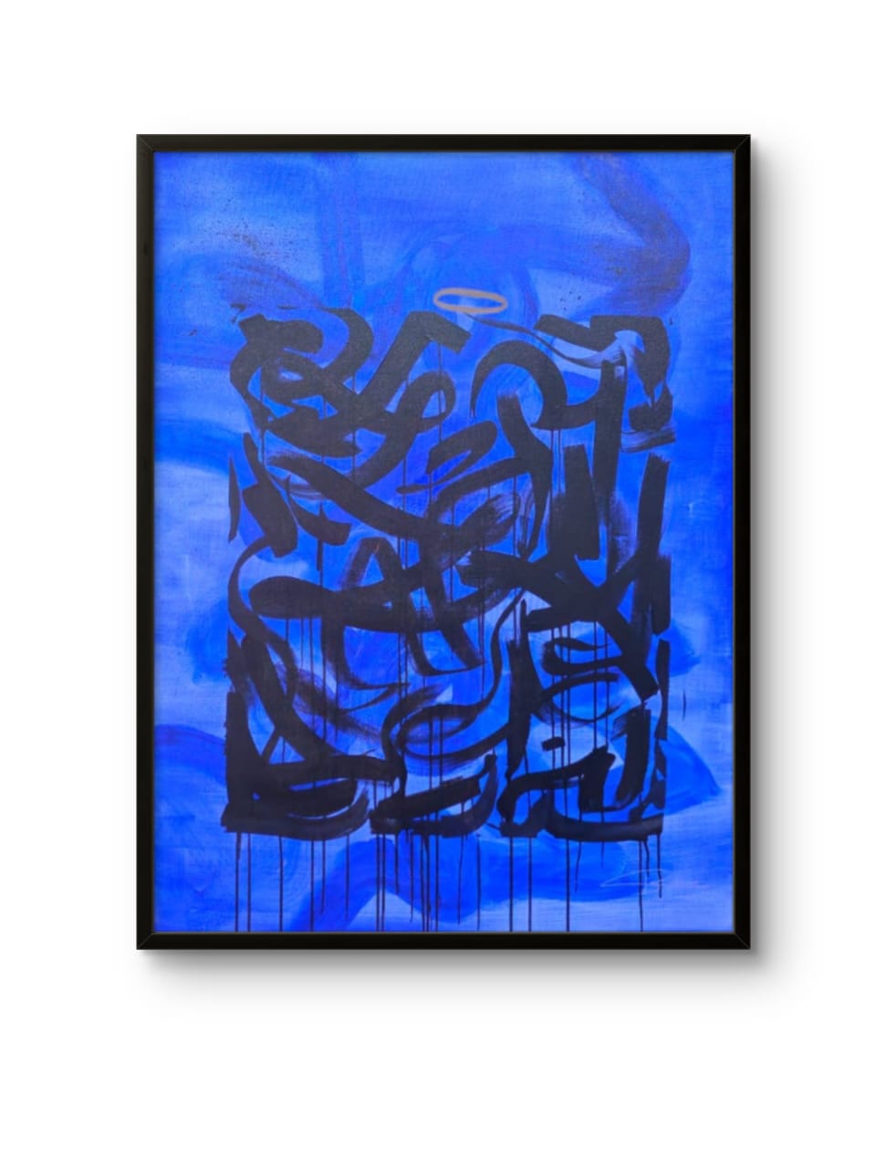 Elevate your space with the Urban Blue Vibe painting, a striking blend of deep blue hues accented by bold black and white graffiti. This unique artwork captures the essence of urban culture, making it a perfect statement piece for modern interiors. Its vibrant colors and dynamic design not only enhance your decor but also inspire creativity and conversation.